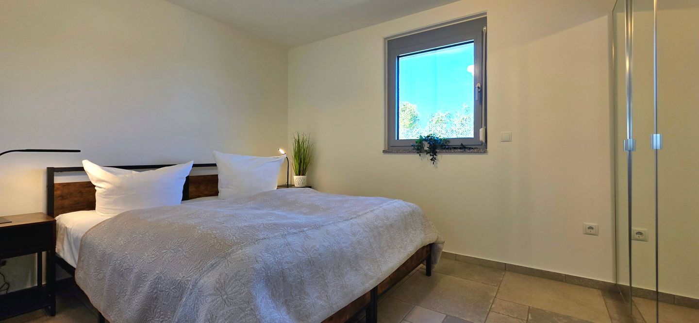 • ein Schlafzimmer mit Doppelbett (180 cm x 200 cm, geteilte Matratze)